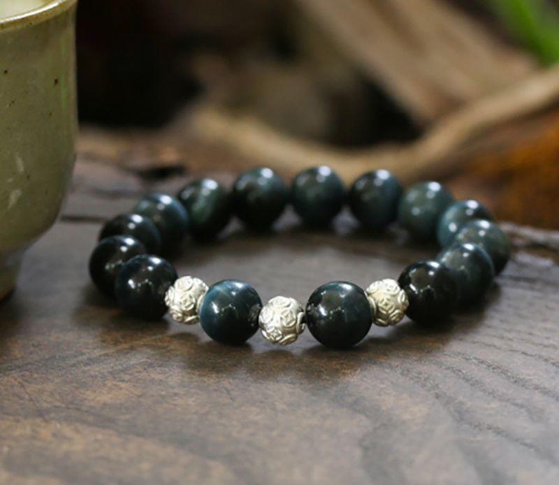 Vòng tay đá mắt hổ xanh đen không những mang một vẻ đẹp bí ẩn, khác biệt mà mang lại may mắn, tài lộc cho người Mệnh Thủy và Mộc.
