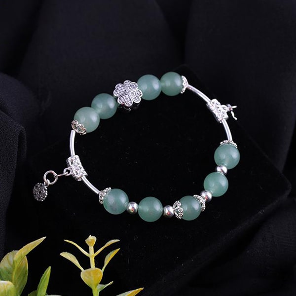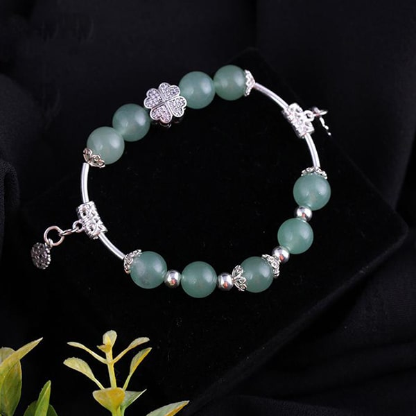 Vòng tay Mã Não Xanh kết hợp với Charm Cỏ 4 lá cho cuộc sống hạnh phúc.