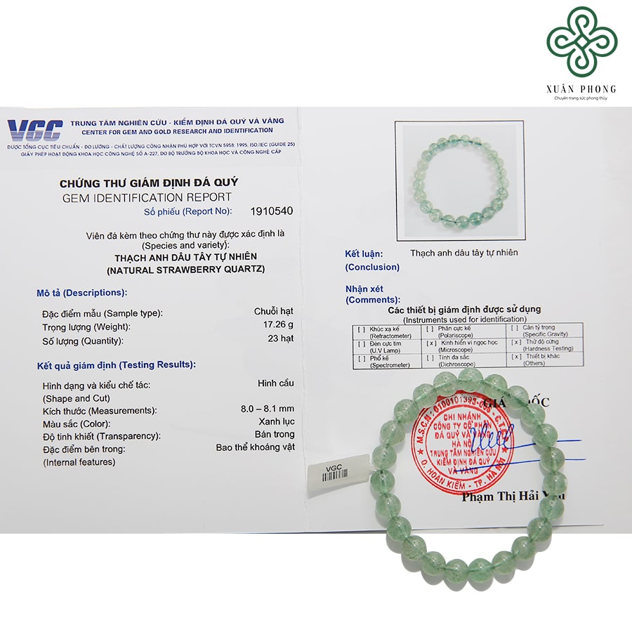 - Tùy theo độ lớn của hạt vòng mà giá của mỗi sản phẩm lại có mức giá cao thấp khác nhau. Hiện nay, các sản phẩm vòng tay thạch anh dâu tây xanh với loại 8 ly tại Xuân Phong có trọng lượng là 14,5 gram có giá là 515.000 VNĐ. Hiện tại, Xuân Phong đang có chương trình khuyến mãi với mức giá giảm chỉ còn 385.000 VNĐ một sản phẩm. Hãy nhanh tay liên hệ để đặt mua được một chiếc vòng tay với giá sale bất ngờ này nhé! Ngoài ra, tại Xuân Phong, vòng tay thạch anh dâu tây xanh cũng có rất nhiều kích cỡ khác nhau như 10 ly, 12 ly và 14 ly, phù hợp với nhu cầu và sở thích khác nhau của từng khách hàng.